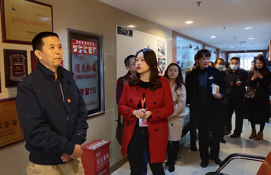 劉副主任就互聯(lián)網(wǎng)黨建工作進(jìn)行詳細(xì)調(diào)研,聽取集團(tuán)黨建情況匯報(bào),與黨員代表?xiàng)钅冗M(jìn)行了親切交談,并參觀了集團(tuán)黨建長廊。劉副主任強(qiáng)調(diào),要加強(qiáng)對(duì)云紡科技園內(nèi)互聯(lián)網(wǎng)龍頭企業(yè)的調(diào)研和宣傳工作。