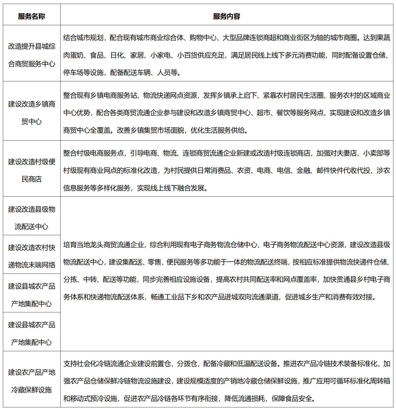 縣域商業(yè)建設(shè)行動(dòng)服務(wù)內(nèi)容