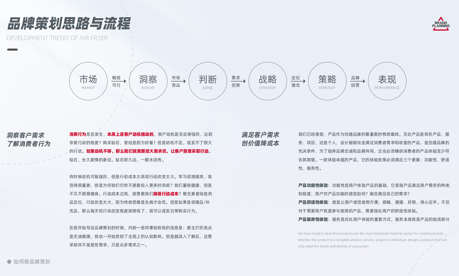 全面調(diào)研:決策層訪談、產(chǎn)品項目調(diào)研、客戶以及競爭品牌的調(diào)研等。