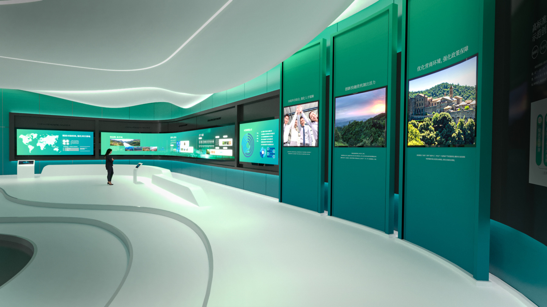 天度集團(tuán)擁有專業(yè)的展廳展館主題策劃、內(nèi)容制作、硬件集成、場館設(shè)計(jì)及施工團(tuán)隊(duì),以多媒體和數(shù)字化技術(shù)作為展示技術(shù)、最新的影視動(dòng)畫技術(shù),結(jié)合獨(dú)到的圖形數(shù)字和多媒體技術(shù),實(shí)現(xiàn)人機(jī)交互方式的展廳形式,集各種多媒體展覽展示系統(tǒng)為一體的綜合展示平臺(tái),包括數(shù)字沙盤、環(huán)幕/弧幕/球幕影廳、迎賓地幕系統(tǒng)、互動(dòng)吧臺(tái)、虛擬漫游、LED拼接屏、互動(dòng)鏡面及觸摸屏等實(shí)現(xiàn)數(shù)字化展廳一站式解決、實(shí)施方案。