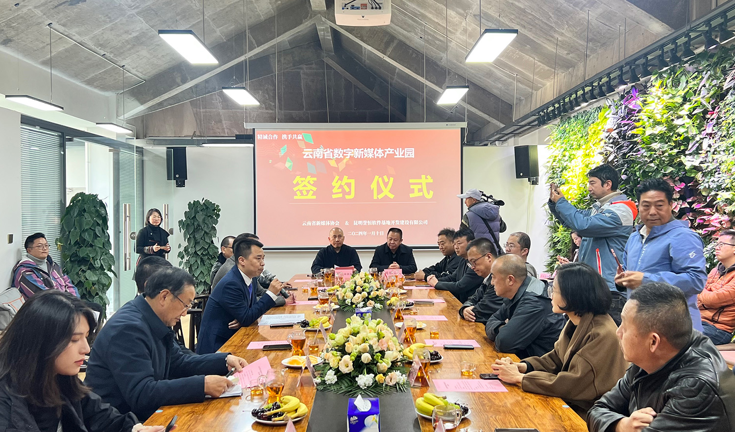 2024年1月10日下午,云南省新媒體協(xié)會會長鄭桂文與昆明譽(yù)恒軟件基地開發(fā)建設(shè)有限公司董事長周曉東在昆明經(jīng)開區(qū)簽訂《合作協(xié)議》,雙方將共同建設(shè)運(yùn)營“云南省數(shù)字新媒體產(chǎn)業(yè)園”,合力打造7.6萬平方米規(guī)模的數(shù)字新媒體產(chǎn)業(yè)集聚區(qū)、生態(tài)區(qū)、服務(wù)區(qū)。