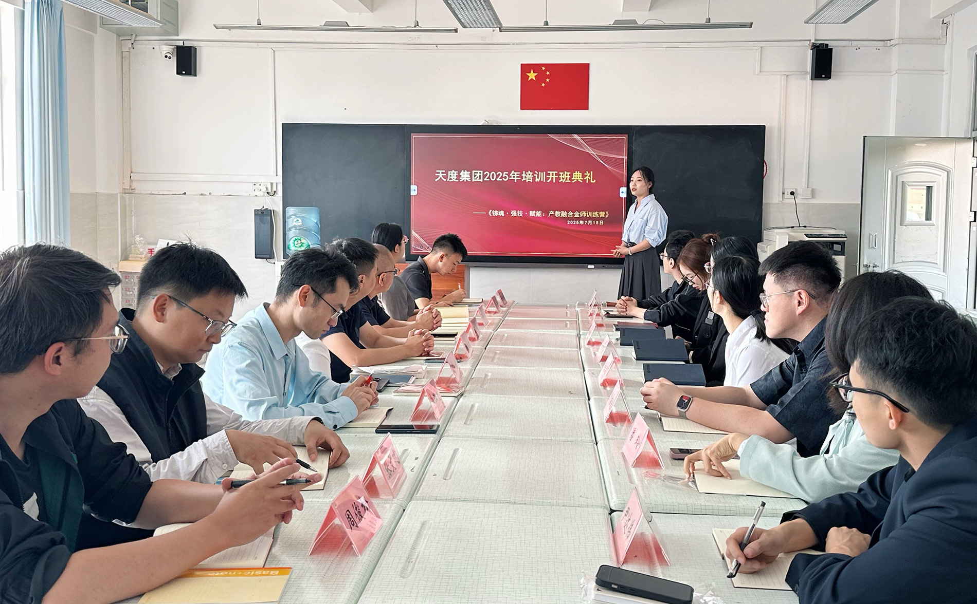 陳夢(mèng)霞老師向所有參訓(xùn)教師詳細(xì)介紹了此次培訓(xùn)的整體計(jì)劃、紀(jì)律要求,并進(jìn)行了班委成員的推薦選舉。講師隊(duì)伍是知識(shí)沉淀與人才孵化的重要引擎,我們必須主動(dòng)擁抱人工智能與產(chǎn)業(yè)發(fā)展浪潮,將生產(chǎn)一線真實(shí)場(chǎng)景轉(zhuǎn)化為教學(xué)資源,為集團(tuán)新質(zhì)生產(chǎn)力發(fā)展持續(xù)注入智力動(dòng)能。祝愿所有參訓(xùn)教師通過此次培訓(xùn),能夠真正做到鑄師魂、強(qiáng)技能、賦新能。